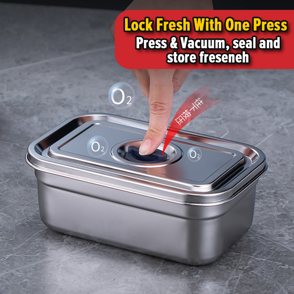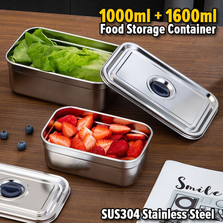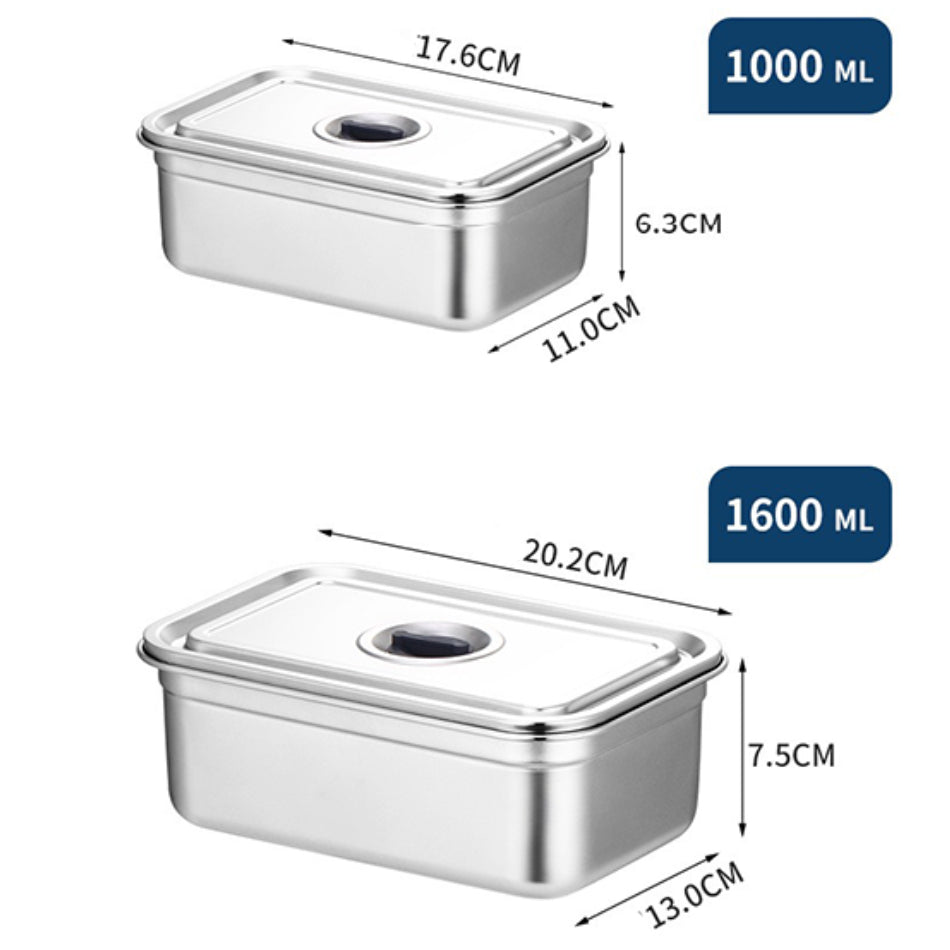 A set of two stainless steel SUS304 leakproof seal tight freshkeeping food storage box container. The container is 1000ml + 1600ml volume capacity.