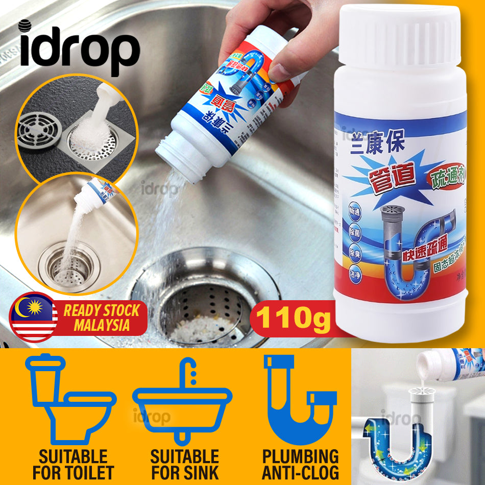 A powder based cleaning agent that helps to unclog clogged drainage of pipes such as from sinks, toilets and shower drainage. The powder reacts with contact with water and helps unclog the drainage by dissolving the clogged matter. It helps smoothen out drainage to allow proper water drainage. It also help to clean and disinfect the pipe system and prevents bad odor