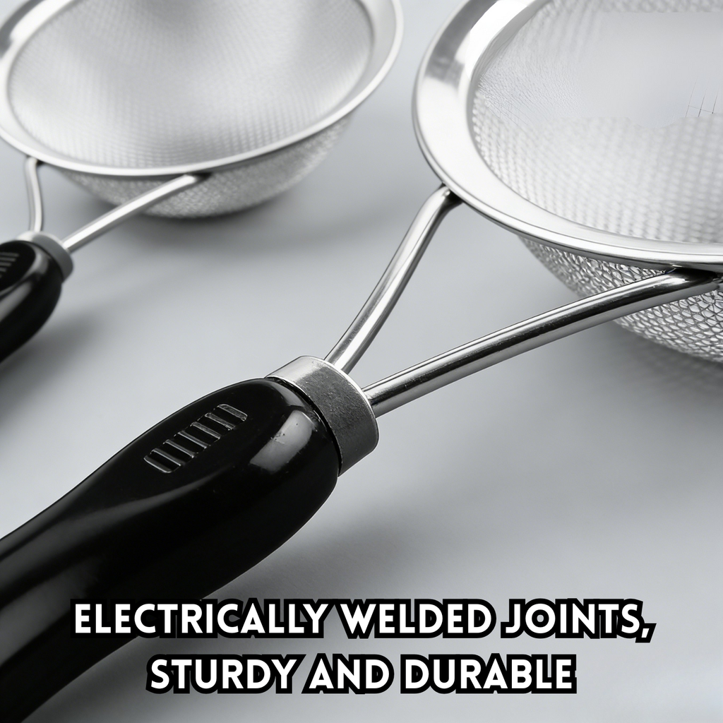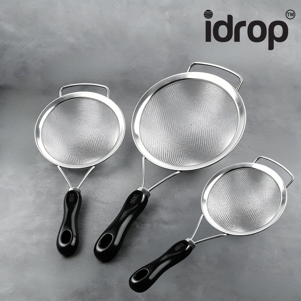 idrop Stainless Steel Oil Strainer & Colander with Black Handle (16cm–24cm)