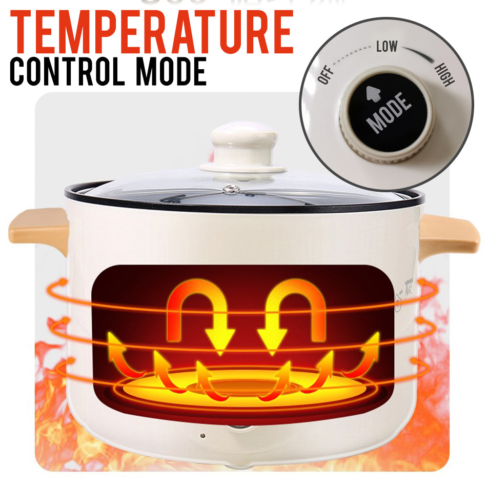 A multi-purposed electric pot. It has two adjustable power knob---small/Low and large/High heat temperature power which is suitable for most cooking needs. Its 360 degree heat circulation means the food cooked inside will be ready in no time. Its non-stick inner pot gives easier cleaning and long-lasting cooking.