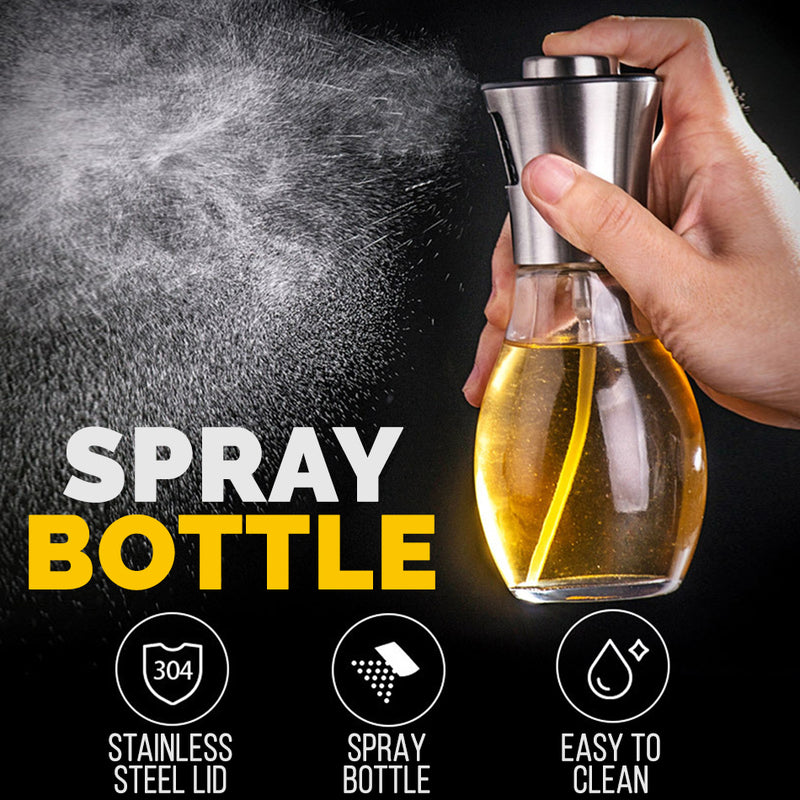 A 200ml kitchen seasoning spray bottle. Made from glass and sturdy built, it can be used to store seasoning sauce, oil and even soy sauce. It uses a spray feature. By pressing the top half, it allows to spray the seasoning. It helps user to control how much seasoning is needed.
