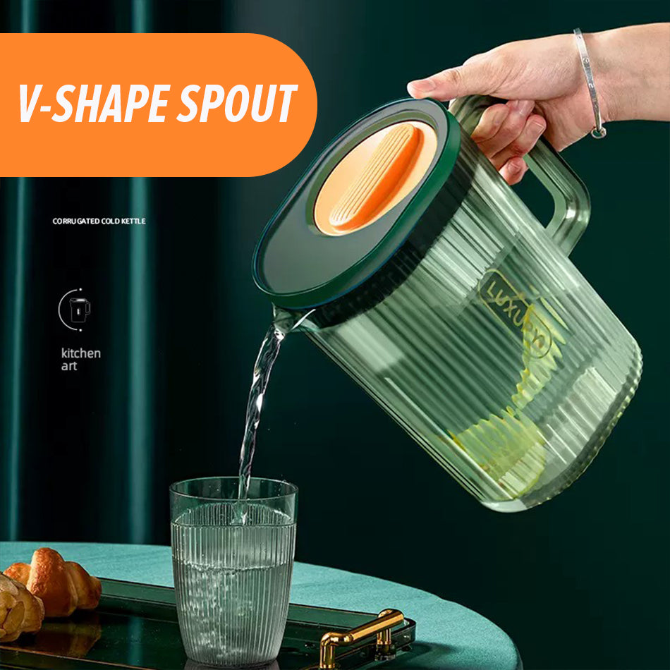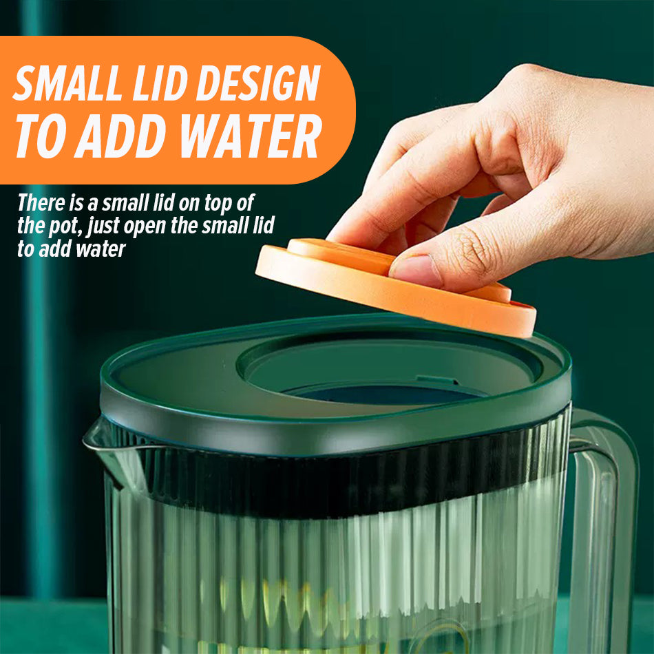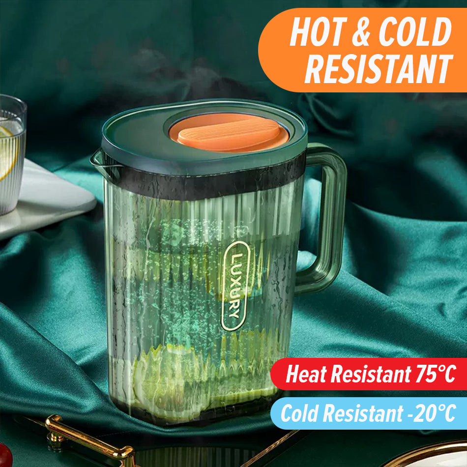 A 2000ml drinking water jug. Hot and cold resistant drinking jug. Made from food grade PP material. It has a small lid cover, that can be open and closed easily.