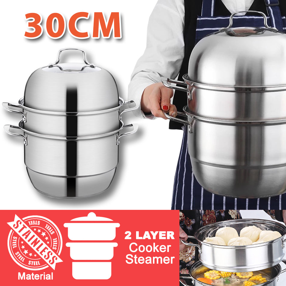 A 30cm 2 Layer stainless steel cooker steamer. Suited for making many types & various food. Suitable for making good decent quantity of food.
