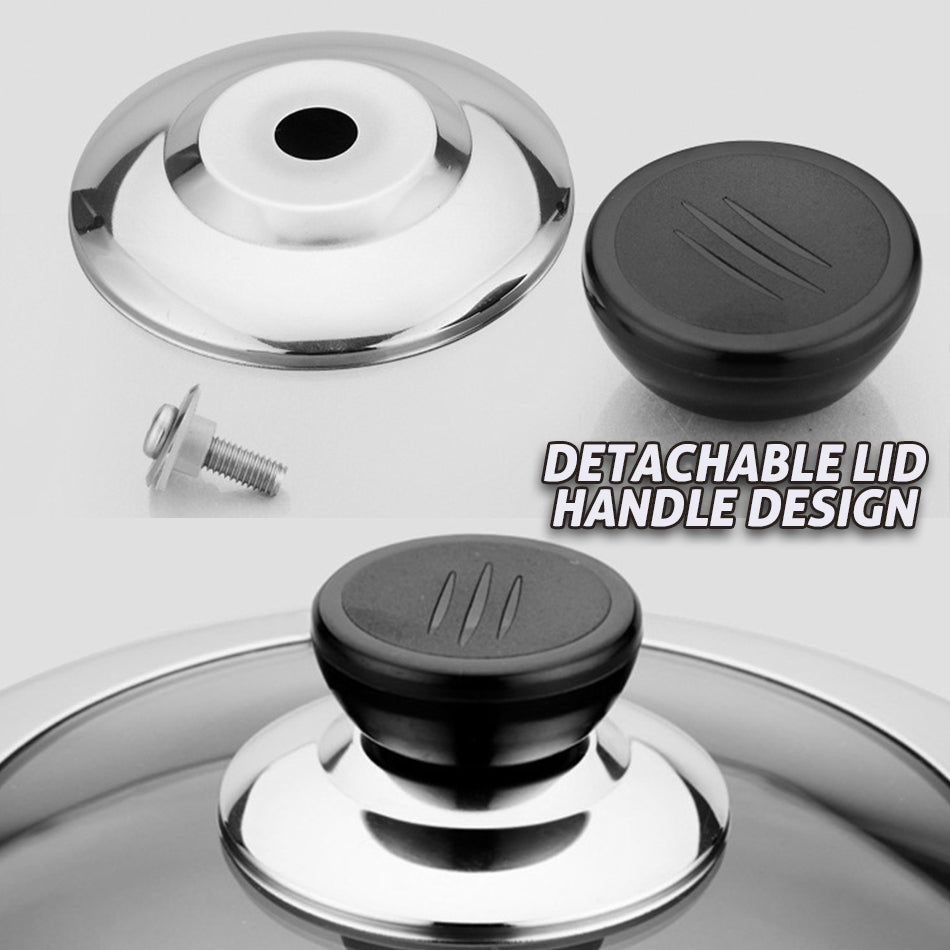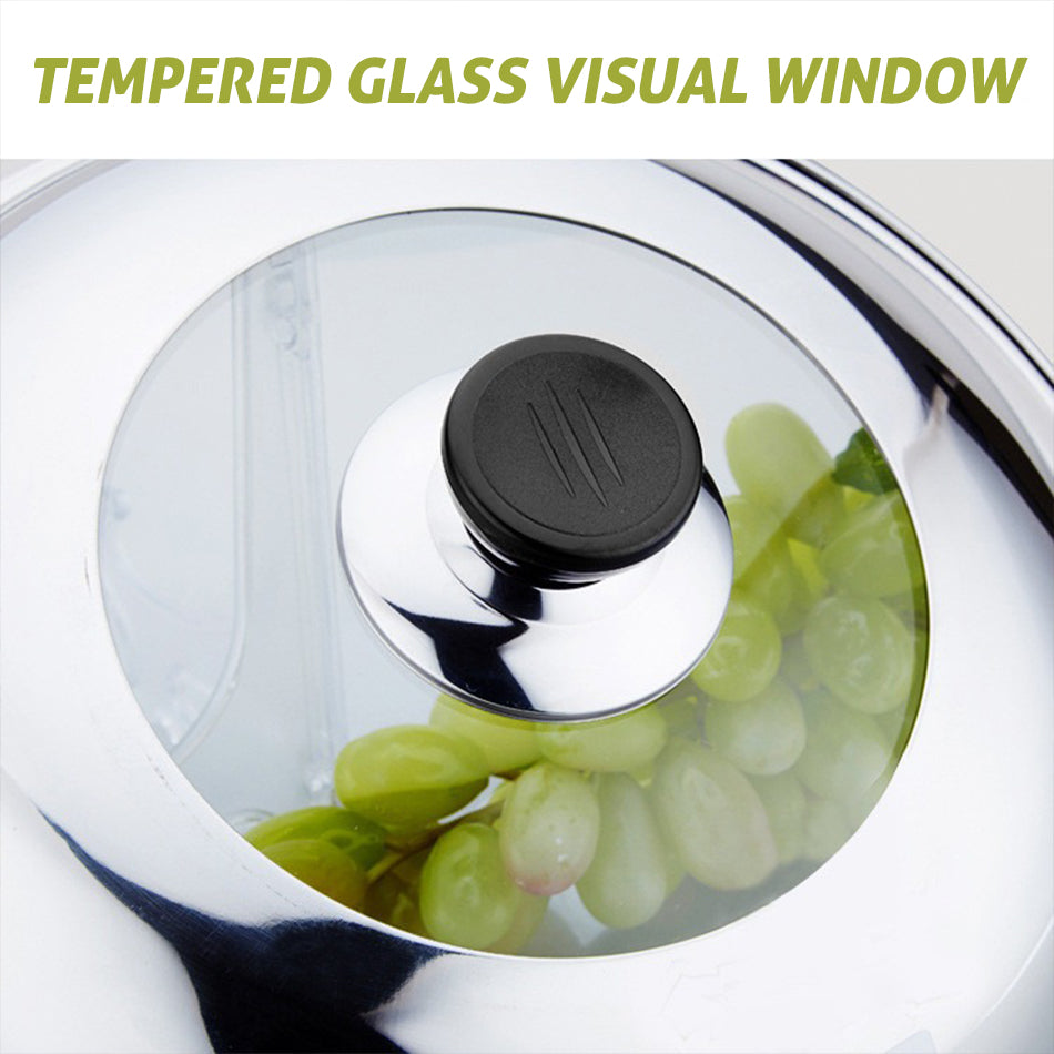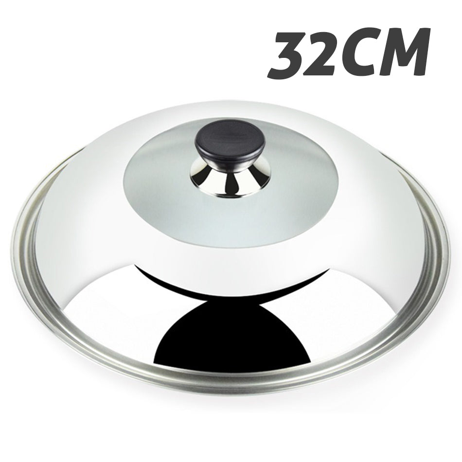 A 30CM & 32CM cooking pot lid cover. Made from stainless steel with tempered glass visual window. Has a anti scalding bakelite handle.