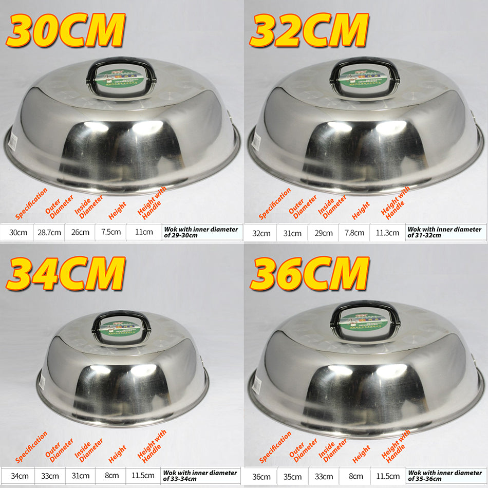 - Full Stainless Steel 30cm, 32cm, 34cm, 36cm, 38cm, 40cm and/or 42cm lid cover