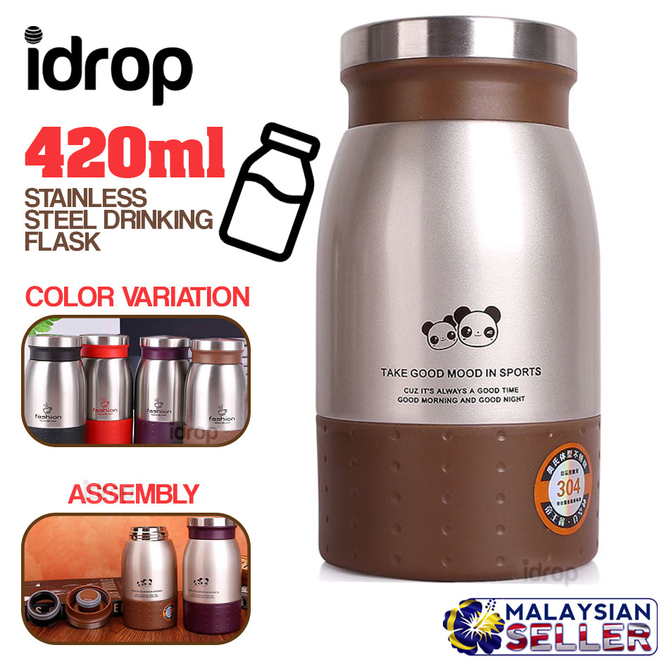 A mini compact stainless steel drinking flask design. It has a volume capacity of 420ml and has a vacuum tight seal lid and cover. Small in size, it is convenient to be brought anywhere.