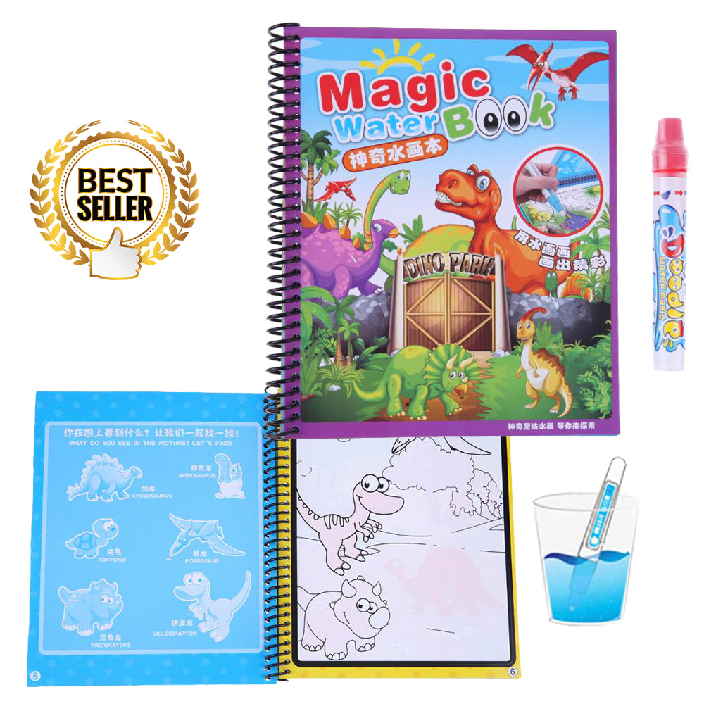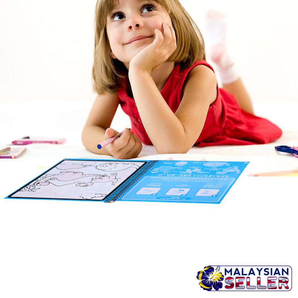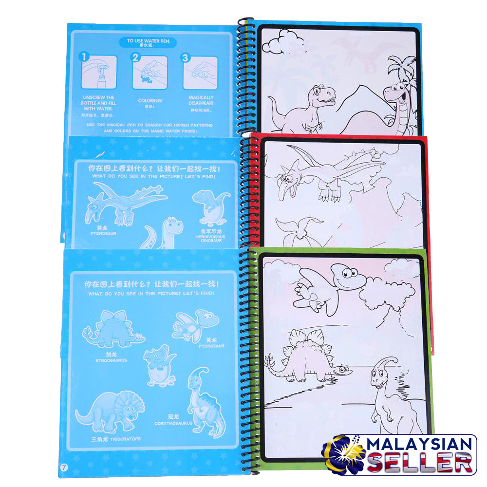 This is a coloring book which is a magic coloring book due to it's ability to be reusable and does not use normal pen or maker pen. In order to color it, the kids only need to fill the marker with water to use the ink. The color can be wipe to remove and use it another time. This coloring book comes in a theme of dinosaurs life. As it uses water as source of ink, definitely an eco-friendly toy.