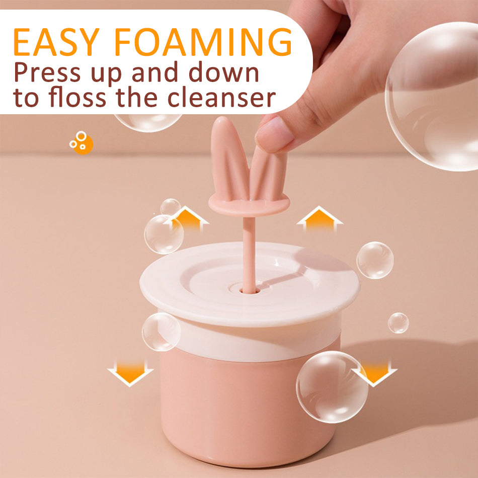 Facial cleanser cup for foaming soap and facial cleanser. Press and pull the tever up and down to help foam the soap and water inside the cup.