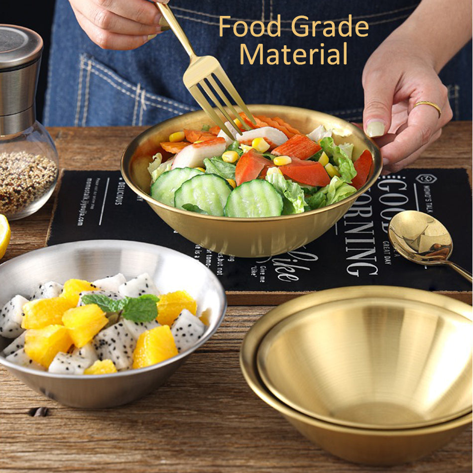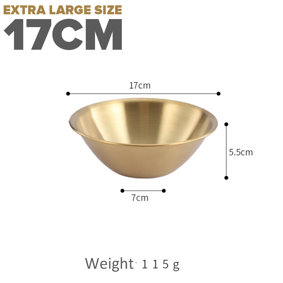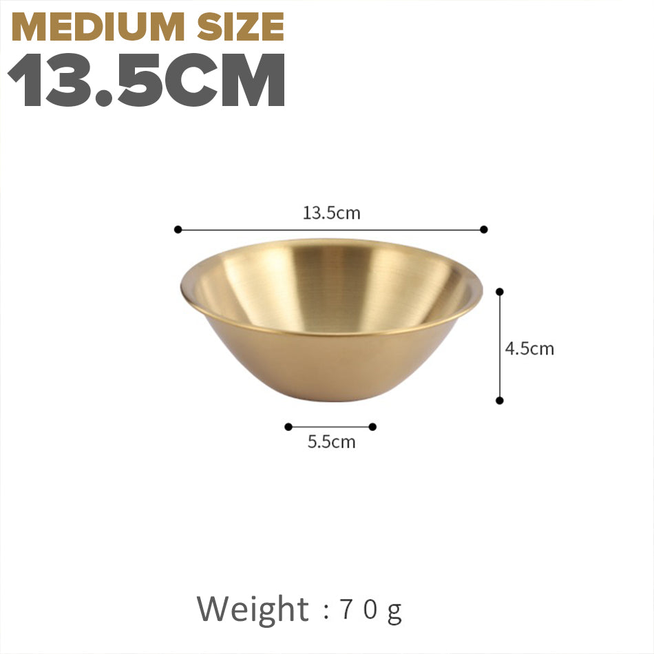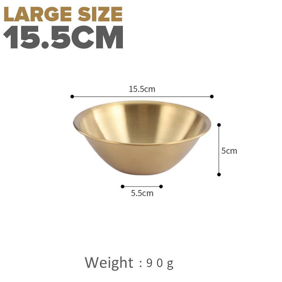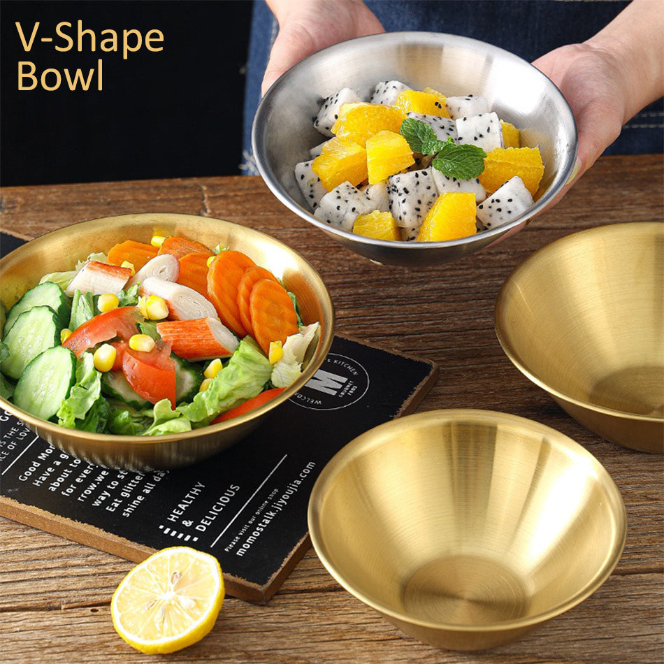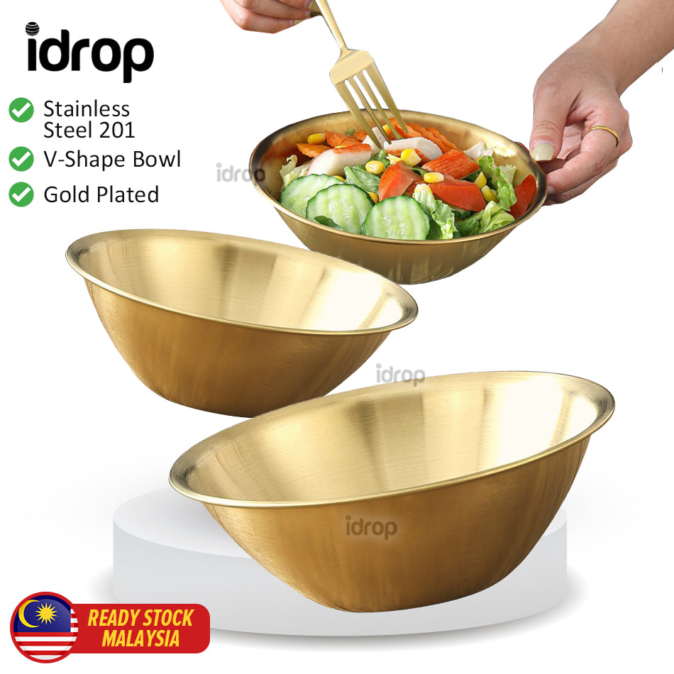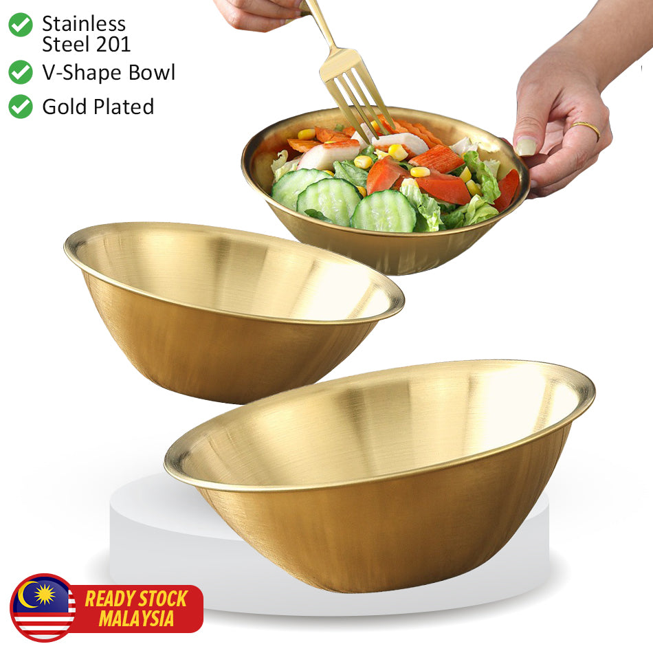 A gold plated V-shape bowl. Made from stainless steel SUS201 material. Comes in 3 sizes of medium, large and extra large.
