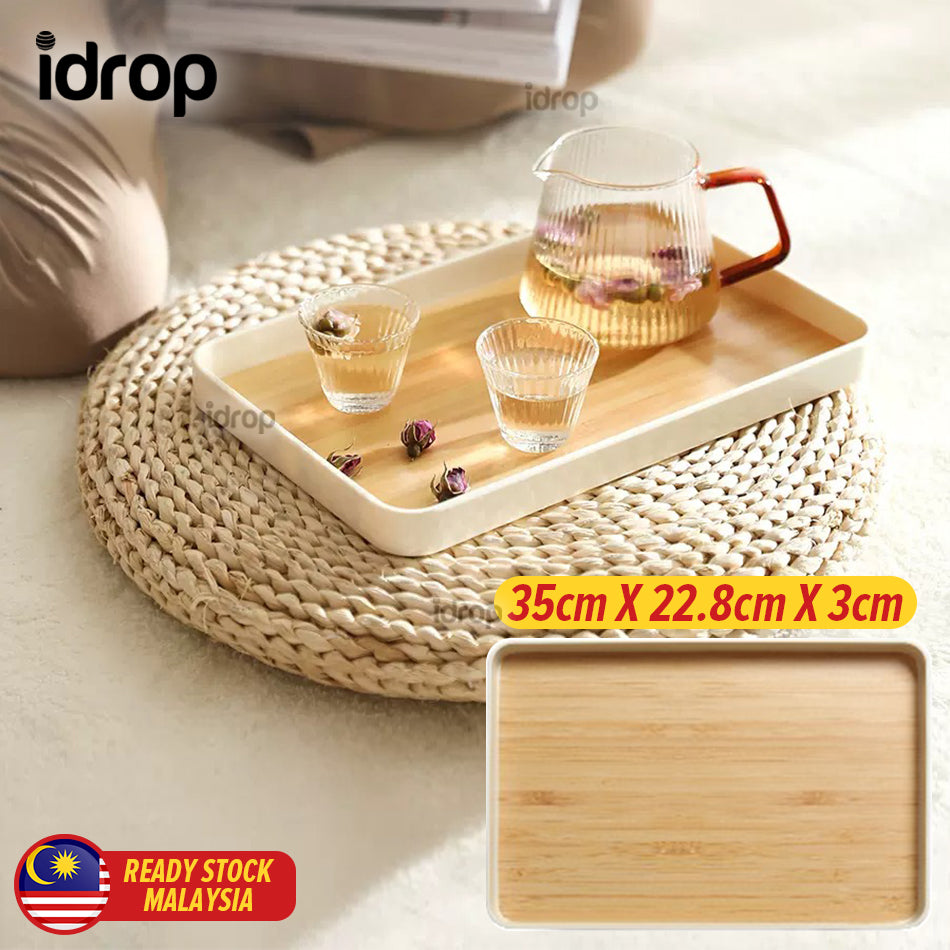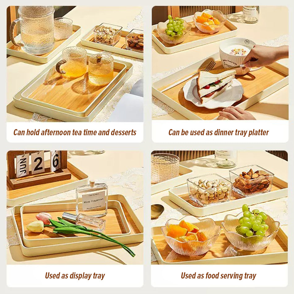 A food and drink serving tray with a minimalist design with smooth corner. Made from eco friendly material. Suitable for serving food and drinks, and also displaying items and trinkets.