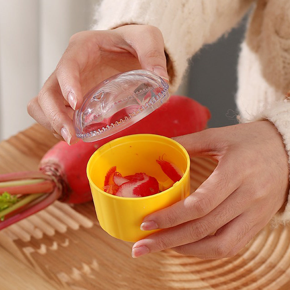 A multifunction kitchen fruit & vegetable storage peeler. It has a 2 way peeler blade, making it easy to peel and slice.