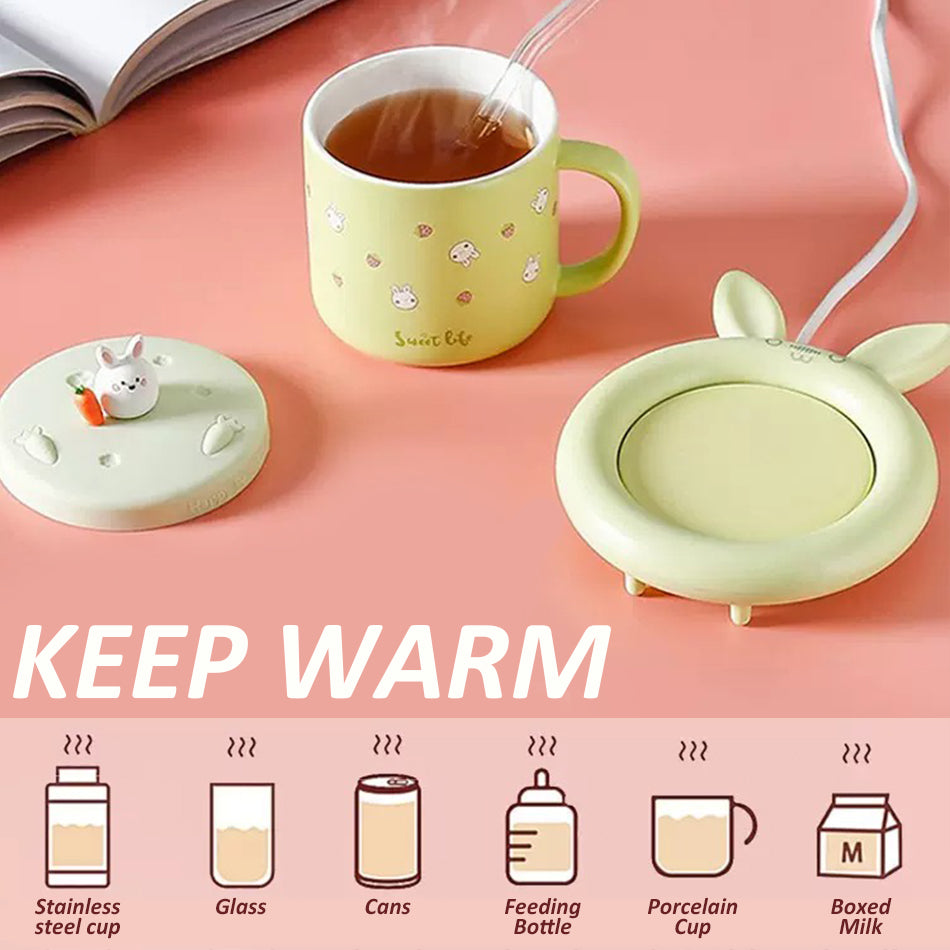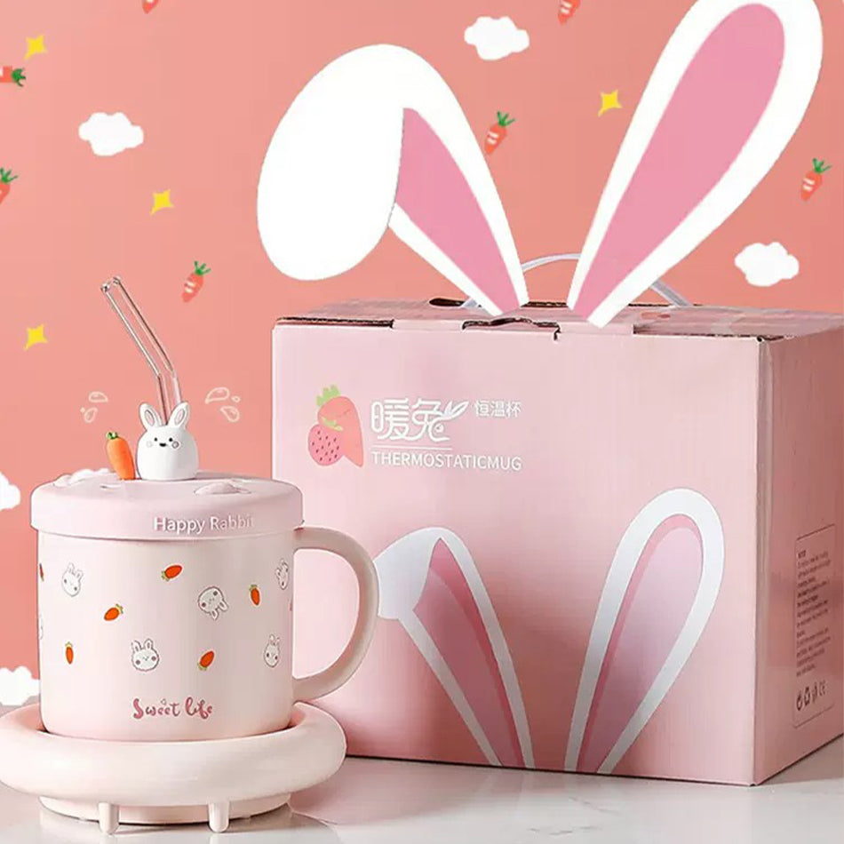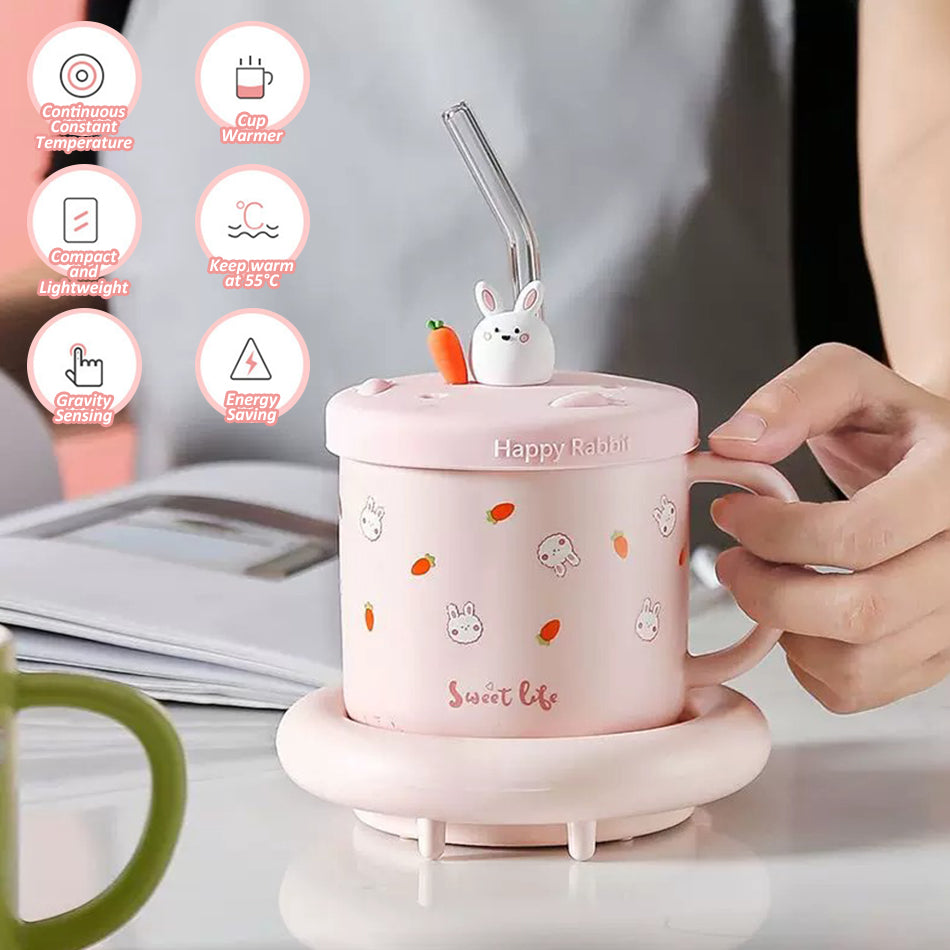 Cute smart cup warmer with pink rabbit design. Suitable for warming drinking cups and various drinking tableware. With a volume capacity of 320ml