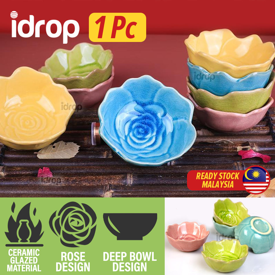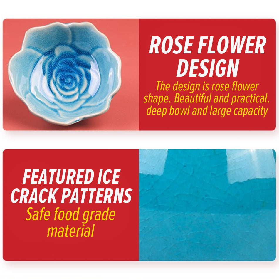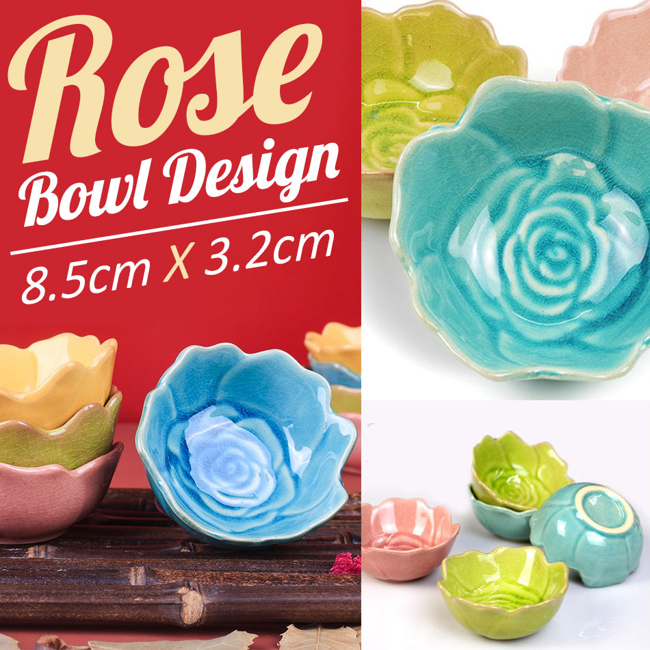 A small ceramic rose flower bowl. Made from glazed ceramic material, heat resistant and has a deep bowl design. The bowl glazed coating has a beautiful vein-like design.