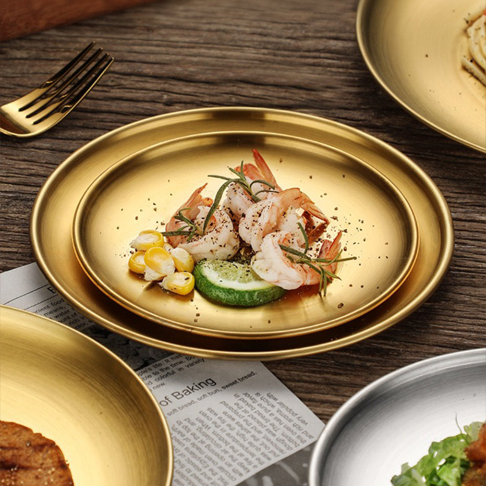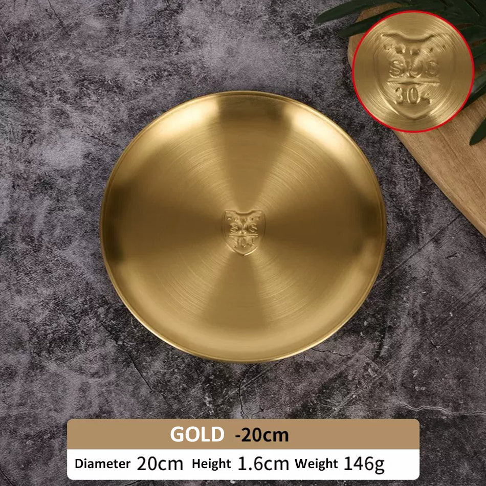 A gold plated barbecue plate. Made from stainless steel SUS304 material. Comes in 3 sizes 14cm, 17cm and 20cm.