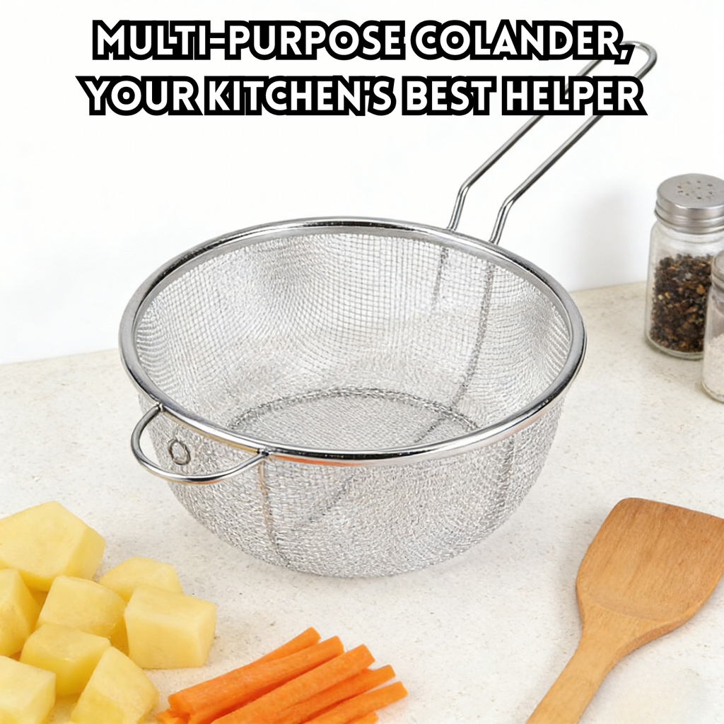 idrop Stainless Steel Oil Strainer Filter Mesh – Anti Oil Splash Deep Fry Strainer Basket