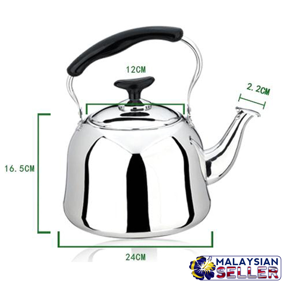 This is a stainless steel kettle with thickened bottom. It's not an electric but instead it uses gas or induction cooker to heat up the water. It comes in two which are 5 litre volume capacity and 7 litre volume capacity.