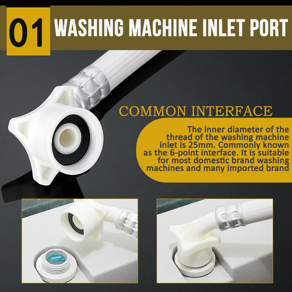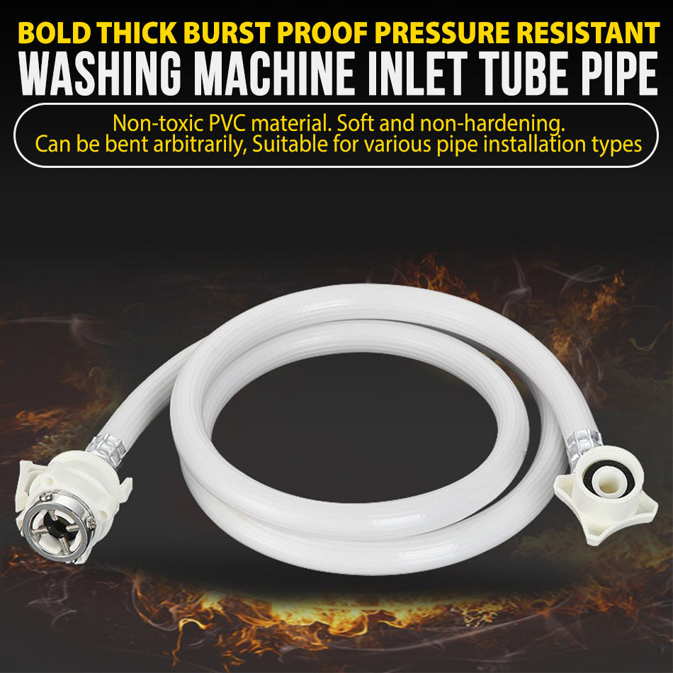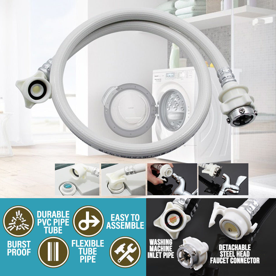 Washing machine inlet pipe tube. Durable and flexible, it is burst proof. Easy to assemble and use. Connects washing machine to a faucet water source. The pipe tube connector is compatible with most washing machine brands and well known brands. It is also compatible with various faucet design.